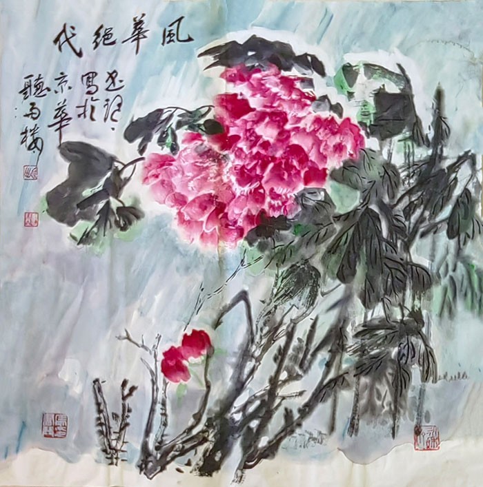 五十年代,马书琴出生于黑龙江一个偏远小镇的诗书世家(祖籍山东泰安)。母亲作为大家闺秀的雅致涵养,成为她最早的艺术启蒙。家中景德镇瓷壶上的梅雀图、窗棂上的冰花、院落里的果树花草,都成为她心中最初的美学符号。而长她三岁的兄长——那位能用画笔让家中鸡鸭猫狗“活”起来的少年,更是她艺术道路上的引路人。60年代初期,兄长为县城绘制六幅巨幅伟人壁画,悬挂在火车站和主要街巷中心,成为当地一道亮丽风景,也深深震撼了少女马书琴的心灵。从那时起,书画的种子便在她心中生根发芽,开启了长达半世纪的艺术追寻。
