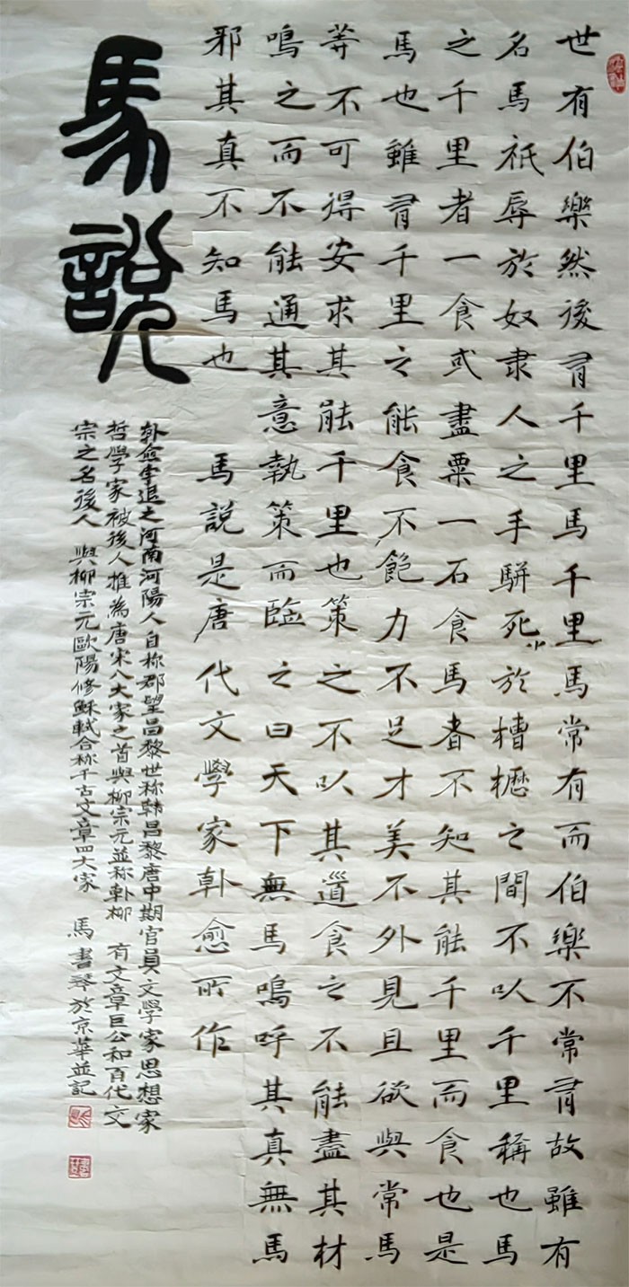 马书琴的书法艺术,正如著名书法大家李铎所评:“用李可染的话说:‘可贵者胆,所要者魂’,两者兼备,有胆有魂!”其代表作《兰亭序》更是被新加坡书法家协会会长陈声桂盛赞:“潇洒纵横、玲珑飞翼、神韵悠闲、浑然一体!”山东张虎臣先生评其作品“运笔流畅自如、雄浑遒劲,布局合理、实为佳作”;湖南张九鹏先生称其“书法造诣很深,确是女中豪杰、巾帼才女”;江苏王野云先生则形象地比喻其书风“颇有千金小姐的秀丽,又不失大丈夫的骨力”。这些评价精准勾勒出马书琴书法的独特魅力——刚柔相济,气韵兼得。