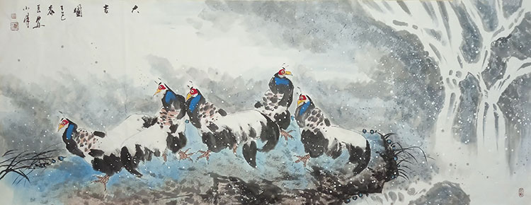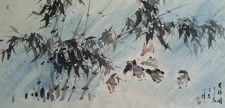 作为陕西国画院花鸟画院的院聘画家,方小峰在继承传统上下过苦功。他研习青藤、白阳之放逸,揣摩八大、石涛之奇崛,汲取吴昌硕、齐白石之雄强,又得长安画派“一手伸向传统,一手伸向生活”之真传。然而可贵的是,他食古能化,师古不泥,在扎实的传统功底之上,渐渐形成了自己的艺术语言。