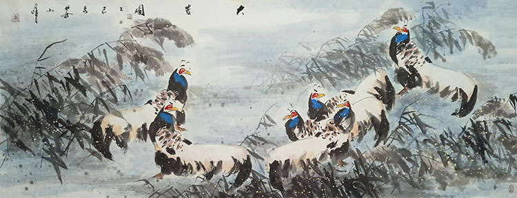 他的花鸟画中,既有北方画派的刚健雄浑,又融入了些许南方绘画的温润灵秀。这种刚柔并济的特质,恰如西安这座城市——既有秦腔的高亢激越,又有埙音的悠远深沉。